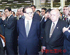 國(guó)家主席江澤民20日在土耳其總統(tǒng)德米雷爾的陪同下,參觀伊斯坦布爾的一家高科技公司。中新社記者 彭偉祥 攝