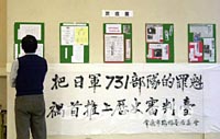 圖:東京舉行七三一部隊細菌戰(zhàn)展示會 2001年12月21日 20:01 ![]() 一百八十名中國受害者控告原日軍七三一部隊細菌戰(zhàn)暴行的訴訟將于近日結(jié)審,為支持中國原告的正義要求,日本有關(guān)民間團體21日在東京舉行七三一部隊細菌戰(zhàn)展示會,揭露七三一部隊在中國犯下的滔天罪行。圖為從中國受害地湖南省常德市寄來的橫幅及介紹七三一部隊培殖炭疽菌的介紹材料。中新社記者 陶光雄 攝 |