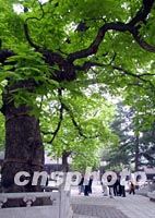 圖:游人在潭柘寺娑羅樹下"沾仙氣" 2002年04月23日 10:49 ![]() 四月北京西郊潭柘寺院中的游人正在觀賞已具千年樹齡的娑羅樹。相傳此樹種源于印度,釋迦牟尼“寂滅”于娑羅雙樹之間,故佛門將此樹視為寶樹供養(yǎng)。“娑羅樹在返青季節(jié)凡人在樹下可“沾仙氣”的傳說,使得這里每年四月間都吸引游人在此駐足祈福。中新社記者 宋吉河 攝