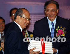 ![]() 擁有一百萬(wàn)潮藉人口、一百多個(gè)潮藉社團(tuán)的香港,4月23日成立了“香港潮屬社團(tuán)總會(huì)”, 主席陳偉男向出任榮譽(yù)會(huì)長(zhǎng)的香港長(zhǎng)實(shí)集團(tuán)主席李嘉誠(chéng)頒發(fā)證書(shū)。中新社記者 任晨鳴 攝