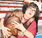 "肥姐"沈殿霞為拍劇與猩猩親熱惹皮膚過敏(圖) 2002年05月24日 09:07 ![]() 中新網(wǎng)香港5月24日消息:“肥肥”沈殿霞最近為新加坡劇集《肥肥一家親續(xù)集》到廣東番禺拍外景,劇情描述本是頂級(jí)廚師的肥肥,被欠下高利貸之兄弟連累,為逃避追殺,逃到番禺野生動(dòng)物園做喂飼員,跟猩猩做對(duì)手戲。 雖然肥肥鐘意動(dòng)物,但對(duì)猩猩仍有些害怕,拍戲前肥肥喂粟米球與甘蔗給猩猩吃來培養(yǎng)感情,以致猩猩特別入戲,抱著肥肥不放。雖然事前動(dòng)物園工作人員曾給猩猩洗過澡,但由于猩猩有體臭,肥肥又要跟猩猩做不少親熱動(dòng)作,如面貼面等,讓肥肥覺得好困難,拍完后肥肥急忙返酒店洗澡,但仍引起皮膚過敏。 據(jù)香港媒體報(bào)道,這次到番禺,有關(guān)方面安排肥肥入住總統(tǒng)套房,據(jù)悉,之前澳門特首何厚鏵也入住過,所以肥肥還在房間內(nèi)拍照留念。