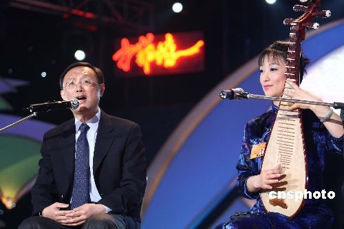 三月八日晚,慶!叭恕眿D女節(jié)文藝晚會在全國政協(xié)委員駐地上演,中國外交部部長楊潔篪與中國曲藝家協(xié)會副主席,蘇州市評彈團(tuán)團(tuán)長助理盛小云合作演出評彈,為出席兩會的女委員獻(xiàn)曲。中新社發(fā) 盛佳鵬 攝