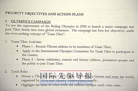 “行動(dòng)計(jì)劃”將針對(duì)北京奧運(yùn)會(huì)采取行動(dòng)列為第一點(diǎn)。文件提出該行動(dòng)有4大目標(biāo),并要在全球范圍內(nèi)招募人員組建一個(gè)名為“西藏之隊(duì)”(Team Tibet)的隊(duì)伍,專門針對(duì)奧運(yùn)會(huì)采取行動(dòng),目標(biāo)人員包括“知名人士、現(xiàn)役和退役運(yùn)動(dòng)員、杰出人士和民眾”,F(xiàn)在看來(lái),連搶金晶火炬的洛桑·甘丹這類暴徒也是“西藏之隊(duì)”網(wǎng)羅的對(duì)象。