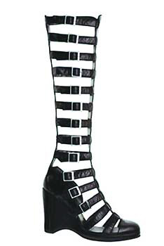 在今季的靴型涼鞋中,黑與白的配搭組成了另一條個性分明的戰(zhàn)線,一向品位出眾的國際品牌Chanel便是個中極品,Chanel今季推出的一款扣帶鏤空楔型靴,密密麻麻的綁帶一直蔓延到膝蓋處,金屬的扣夾加上復(fù)古的圓頭坡跟,帶有一絲浪漫中性的軍旅風(fēng)格。其另一款則沿用了干練的短靴設(shè)計(jì)風(fēng)格,在腳腕處柔軟的白色皮質(zhì)上方,纏以簡練的黑色線條,黑與白的完美配搭帶一點(diǎn)后現(xiàn)代的前衛(wèi)感覺。