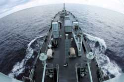 上午10時整,我們搭乘的南海艦隊某補給艦準(zhǔn)時起航。