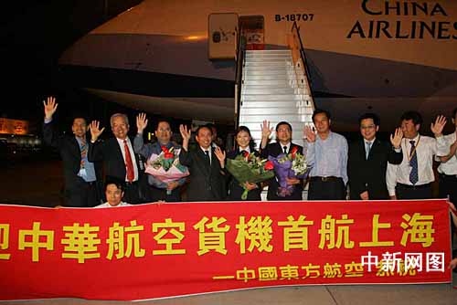 七月二十日凌晨零時(shí)三十三分,兩岸首班專案貨運(yùn)包機(jī)--臺(tái)灣“中華航空公司”CI6901航班飛抵上海浦東國(guó)際機(jī)場(chǎng)。據(jù)了解,本次專案貨運(yùn)包機(jī)搭載的是在滬辦廠的臺(tái)商為擴(kuò)大產(chǎn)能而托運(yùn)的機(jī)械設(shè)備和相關(guān)器材。業(yè)內(nèi)人士分析,兩岸貨運(yùn)包機(jī)的實(shí)現(xiàn),一定程度上能夠滿足臺(tái)商特別是高科技廠商在大陸投資的實(shí)際需求,同時(shí),這也是兩岸空中通航在原有基礎(chǔ)上又邁出的新一步。 中新社發(fā) 潘索菲 攝
