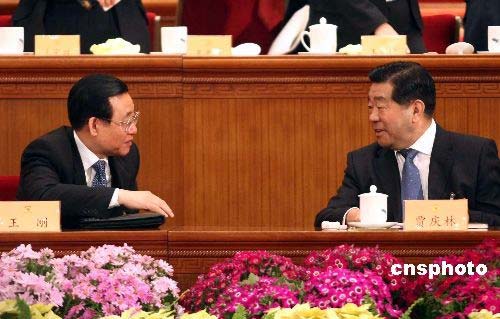 十一屆一次會議主席團會議主持人賈慶林、主席團常務主席王剛出席會議。