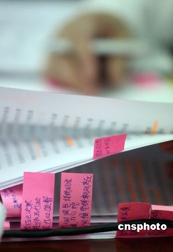 3月5日,出席十一屆全國人大一次會議的澳門代表團舉行全體會議,審議政府工作報告。一位代表審議報告一絲不茍,將自己的看法寫在小紙條上,粘貼在報告文件有關段落旁,以供審議發(fā)言時引用。中新社發(fā) 張宇 攝