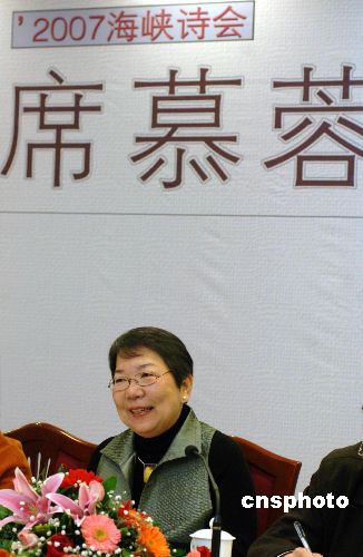 十二月二十二日,由福建省文學(xué)藝術(shù)界聯(lián)合會(huì)、《臺(tái)港文學(xué)選刊》雜志社、福建省文學(xué)藝術(shù)對(duì)外交流中心主辦的2007海峽詩(shī)會(huì)“天和地諧,人和詩(shī)諧——席慕蓉海峽西岸行”在福州拉開序幕,并于當(dāng)天在福建會(huì)堂舉行了席慕蓉作品研討會(huì)。圖為席慕蓉參加研討會(huì)。中新社發(fā) 王東明 攝