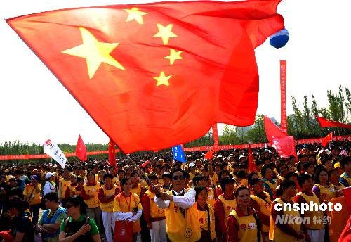 4月26日,在即將進(jìn)入奧運倒計時100天的周末里,“微笑北京志愿奧運共創(chuàng)和諧——2008春季北京國際長走大會”在北京朝陽公園舉行。中新社發(fā) 廖攀 攝