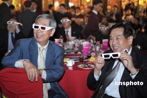 三月八日,全國人大代表、政協(xié)委員攝影聯(lián)誼會在北京舉行,兩會代表委員中的攝影界人士歡聚一堂切磋技藝。十屆全國人大常委會副委員長許嘉璐、十屆全國政協(xié)副主席李蒙,同大家戴上專用眼鏡觀看立體攝影作品圖片。中新社發(fā) 廖攀 攝