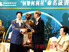 圖文:表彰港人貢獻(xiàn) 小行星被命名為“何梁何利星” 2000年11月8日 07:44 ![]() 朱麗蘭出席行星命名頒授儀式。中國(guó)科學(xué)院南京紫金山天文臺(tái)特別將一顆小行星命名為“何梁何利星”。國(guó)家科技部部長(zhǎng)朱麗蘭(左)七日在香港出席該行星命名的頒授儀式。中新社傳真 王順 攝