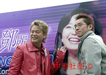 香港明星譚詠麟、陳百祥21日出席在赤柱鄧麗君故居舉行的“永遠的巨星--永遠的鄧麗君”網(wǎng)站啟播儀式。中新社傳真 洪少葵 攝