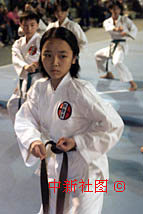 澳門體育界慶祝澳門回歸祖國一周年表演晚會17日晚在塔石球場舉行。澳門空手道總會的小運動員表演精彩。中新社記者滿會喬攝