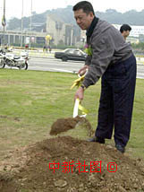 圖片:何厚鏵為慶祝澳門回歸一周年植樹 2000年12月18日 16:13 ![]() 為慶祝澳門回歸一周年,特區(qū)行政長官何厚鏵十七日在蓮花廣場附近種下一棵紀(jì)念樹。中新社傳真宗金柱攝