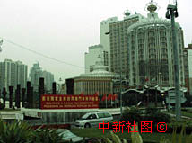 圖文:澳門街頭懸掛期盼江澤民主席到來的橫幅