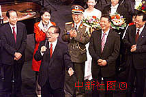 圖片:江澤民在文藝演出后走上舞臺(tái)高歌三曲 2000年12月20日 16:10 國(guó)家主席江澤民20日在慶祝澳門回歸祖國(guó)一周年慶祝大會(huì)文藝演出后走上舞臺(tái),高歌三曲——《洪湖水》、《教我如何不想她》、《歌唱祖國(guó)》,贏得滿場(chǎng)掌聲。中新社傳真 滿會(huì)喬 攝
