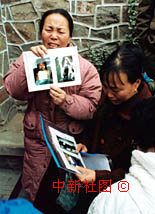 洛陽特大火災(zāi)遇難者遺體的認領(lǐng)工作28日順利進行。圖為一位剛剛找到兒子遺體的母親痛不欲生地展示兒子生前照片。中新社記者 慎重 攝