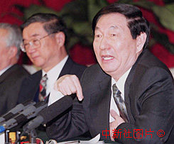 朱(金+容)基參加經(jīng)濟界小組討論會 2000年3月5日 11:50 ![]()