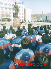 遼寧省撫順市二百多名正在轉(zhuǎn)化的法輪功練習(xí)者,在雷鋒的雕像前重聽雷鋒的故事,感受真正的真和善。中新社圖 爾東 攝