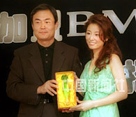 紅遍內(nèi)地、香港及臺(tái)灣的藝人林心如28日在香港、臺(tái)灣媒體的見(jiàn)證下,簽約成為BMG唱片公司旗下歌星,BMG唱片公司崔震東先生并向林心如贈(zèng)送一個(gè)琉璃如意,藉此祝福她的演藝事業(yè)更圓滿(mǎn)如意。中新社傳真 鄧慶樂(lè) 攝