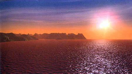 圖文:科普大片《宇宙與人》全文解說(shuō)詞 2001年3月27日 11:03 ![]() 在地球的某個(gè)時(shí)期,海洋中充滿(mǎn)了被氧化的鐵銹,海水呈現(xiàn)出紅色 物質(zhì)的宇宙能夠演化出生命,目前我們惟一所知道的就是我們自己的太陽(yáng)系,但準(zhǔn)確地說(shuō),生命很吝嗇地只選擇了它的第3顆行星———地球,生命在這顆星球上誕生并且改造這顆星球長(zhǎng)達(dá)近40億年。從生態(tài)上看,地球的美麗是獨(dú)一無(wú)二的,然而今天的地球因?yàn)橛辛巳祟?lèi),就不僅是生態(tài)星球,同時(shí)還是一顆文明星球。 地球上惟一直立行走的智能生物———人類(lèi),今天已經(jīng)非常輕松地生活在這顆行星上,但是,從古老文明走到現(xiàn)代文明,人類(lèi)付出了巨大的代價(jià)。而二者之間的跨越的關(guān)鍵,恰恰要取決于人類(lèi)認(rèn)識(shí)宇宙的深度。 望遠(yuǎn)鏡的原始創(chuàng)意 盡管有很多史前文明都顯示了人類(lèi)認(rèn)知宇宙的興趣,但在中國(guó)四川西部三星堆發(fā)現(xiàn)的3000多年前的青銅器,大概是表現(xiàn)得最執(zhí)著的了。這是一個(gè)向往飛翔的古老集體,鳥(niǎo)是他們普遍的偶像,鳥(niǎo)的眼睛被深深地崇拜著,而他們自己的眼睛,更被夸張地塑造了。這可能是人類(lèi)最早的期望通過(guò)眼睛這個(gè)器官的延長(zhǎng),而求索宇宙的向往,這也許是望遠(yuǎn)鏡的最原始的創(chuàng)意。 事實(shí)是,這種愿望終于在400多年前得到了實(shí)現(xiàn)。人類(lèi)的眼睛真的延長(zhǎng)了,望遠(yuǎn)鏡給人類(lèi)文明所起的作用,可以說(shuō)超過(guò)一切其它單件的工具,因?yàn)闆](méi)有它,就沒(méi)有可能了解天體的基本運(yùn)動(dòng),也就沒(méi)有對(duì)神的勇敢的否定,就沒(méi)有可能在天體的觀(guān)察中得到的牛頓定律,也就沒(méi)有以這個(gè)定律為基礎(chǔ)的現(xiàn)代工業(yè)社會(huì)。人類(lèi)在400多年前通過(guò)望遠(yuǎn)鏡在宇宙中獲得了駕馭物質(zhì)的法則,于是,我們的生活就從此日新月異。 太陽(yáng)是我們擁有的一顆恒星。今天,人類(lèi)對(duì)宇宙已經(jīng)看得更遠(yuǎn),理解得更深刻,這種理解使我們已經(jīng)能夠認(rèn)識(shí)宇宙作為一個(gè)整體的物質(zhì)運(yùn)動(dòng),并且更加明確地認(rèn)識(shí)到我們是物質(zhì)運(yùn)動(dòng)的結(jié)果,而宇宙中的星辰,就是全部物質(zhì)運(yùn)動(dòng)的最重要的動(dòng)力。 我們把自己擁有的一顆恒星叫做太陽(yáng),它的光輝對(duì)地球的生命是最根本的,陽(yáng)光在地球表面已經(jīng)掠過(guò)了40多億年,今天的生態(tài)就是純粹陽(yáng)光的塑造,這種塑造使得地球擁有了一個(gè)長(zhǎng)達(dá)40億年的生命鏈,這個(gè)鏈條其實(shí)就是固體的陽(yáng)光,因?yàn)樯谋举|(zhì)的含義就是把光能變成物質(zhì)的新陳代謝。 現(xiàn)在,我們可以精確地知道,這顆價(jià)值非凡的發(fā)光體非常的巨大,它的直徑相當(dāng)于110個(gè)地球,它的表面是6000度的高溫,經(jīng)過(guò)一億五千萬(wàn)公里空間的傳輸,地球只得到它的光輝的5億分之一,但這已經(jīng)足夠了。 它的質(zhì)量相當(dāng)于33萬(wàn)個(gè)地球,但盡管這么大,如果全部是煤,發(fā)出同樣的光和熱只能燒幾千年。然而,它穩(wěn)定地?zé)?0億年,是什么東西這么經(jīng)燒呢? 人類(lèi)的燃燒概念是火,用一堆樹(shù)枝燃燒幾個(gè)小時(shí),這就是我們的獲取能量的概念。這個(gè)基本的方式一直主導(dǎo)著人類(lèi)的文明,但這種燃燒根本沒(méi)有使用宇宙中真正的能量寶庫(kù)———原子核,在本質(zhì)上,木頭的燃燒只是原子們互換位置放出一些化學(xué)能,燃燒后,原子核的質(zhì)量一點(diǎn)沒(méi)有減少。 而太陽(yáng)的燃燒和篝火原理完全不同,它在讓原子核燃燒。愛(ài)因斯坦用著名的質(zhì)能轉(zhuǎn)換的公式計(jì)算出,核能量能達(dá)到普通化學(xué)能量的2000萬(wàn)倍。宇宙中最高效的核能是氫聚變成氦,也就是4個(gè)氫原子聚變成一個(gè)氦原子,這個(gè)過(guò)程可以有千分之七的物質(zhì)轉(zhuǎn)換成能量,雖然只有千分之七,但物質(zhì)的能量太大,如果把1000克氫原子中千分之七的物質(zhì)轉(zhuǎn)換成能量,就相當(dāng)于4000噸石油和6000噸煤。 在一節(jié)只能燒幾分鐘的樹(shù)枝中所蘊(yùn)藏的核能,足以把一盞100瓦的燈泡點(diǎn)亮100萬(wàn)年。 太陽(yáng)就是一個(gè)奢侈的使用核能的天體。 宇宙的物質(zhì)結(jié)構(gòu) 那么,怎樣才能燃燒原子核呢?這就要看我們宇宙的物質(zhì)結(jié)構(gòu)了。物質(zhì)本身沒(méi)有行為,而物質(zhì)中蘊(yùn)含了4種力卻決定了宇宙的一切。其中最強(qiáng)的是強(qiáng)力,它存在于強(qiáng)子之中,核能就是靠它產(chǎn)生的,但這種力只在原子核的直徑范圍起作用,所以,產(chǎn)生核能就必須讓它們相互接觸,也就是核聚變。 核聚變必須有中子,而另一種弱力,能使質(zhì)子衰變成中子,并釋放出射線(xiàn),這個(gè)力是核聚變不可缺少的。 而能否使核聚變發(fā)生,關(guān)鍵卻在于電磁力,它比強(qiáng)力弱100多倍,不過(guò)它延伸得比強(qiáng)力遠(yuǎn),所以一般情況下強(qiáng)力被電磁力封閉著,如果突破不了電磁力,就不會(huì)有核聚變。其實(shí)電磁力是一種非常溫和而美好的力,它天生就有正和負(fù),永遠(yuǎn)不