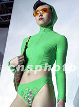 廣東東莞市天倫實業(yè)有限公司,二十七日在北京舉行“軒妮.女人香”專場時裝作品發(fā)布會,著名旅美高級服裝設計師劉洋創(chuàng)作新款作品。圖為中國名模展示休閑女裝。中新社記者 錢興強 攝