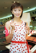 近期人氣急升廣告女郎傅天穎(奀妹)26日在香港出席某日本護膚品頒獎活動。中新社傳真 鄧慶樂 攝