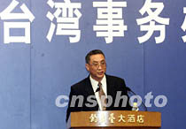 二十七日是中國海峽兩岸舉行“汪辜會(huì)談”的八周年紀(jì)念日,中國海協(xié)會(huì)會(huì)長(zhǎng)汪道涵,在此日發(fā)表題為《歷史的昭示與未來的選擇》署名文章,由國臺(tái)辦新聞發(fā)言人張銘清在北京記者招待會(huì)上宣讀。中新社記者 滿會(huì)喬 攝