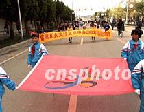 西藏日喀則的兒童們六月走上街頭,支持北京申辦奧運(yùn)。中新社圖 蕭琨 攝