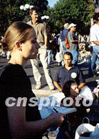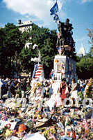 組圖:曼哈頓聯合廣場成公眾悼念場所 2001年09月22日 13:38 ![]() 曼哈頓下城,離世貿中心不遠處的聯合廣場,“九一一”以來成為紐約客悼念死難者的場所。這里遍地是花束、燭臺、國旗和失蹤者的像片,整日人來人往,昔日各種街頭露天表演不復見。中新社記者 郭健 攝 ![]() 自發(fā)悼念“九一一”遇難者是眼下紐約的特殊景觀。這位女畫家正在作現場速寫。中新社記者 郭健 攝