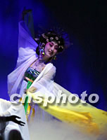 組圖:大型新編京劇《中國貴妃》在上海公演 2001年11月02日 18:42 ![]() 上海國際藝術(shù)節(jié)主打節(jié)目大型新編京劇《中國貴妃》十一月二日上演,它敘述了大唐天子李隆基與楊貴妃的凄美愛情。中國著名的京劇表演藝術(shù)大師梅蘭芳之子梅葆玖在劇中主演楊貴妃。中新社記者 潘索菲 攝 ![]() 大型京劇《中國貴妃》十一月二日在上海公演,其精湛的舞美和宮廷樂舞為新編京劇注入了別樣情趣。圖為貴妃霓裳羽衣舞。中新社記者 潘索菲 攝