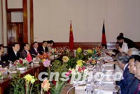 圖:朱镕基與孟加拉總理卡莉達(dá)·齊亞舉行會(huì)談 2002年01月12日 16:33 ![]() 正在孟加拉進(jìn)行正式訪問的中國總理朱镕基,當(dāng)?shù)貢r(shí)間十一日下午在孟加拉國首都達(dá)卡總理官邸與孟加拉總理卡莉達(dá)·齊亞舉行會(huì)談,就雙邊關(guān)系和共同關(guān)心的國際與地區(qū)問題廣泛交換意見。中新社記者 張朔 攝 ![]() 正在孟加拉進(jìn)行正式訪問的中國總理朱镕基,當(dāng)?shù)貢r(shí)間十一日下午在孟加拉國首都達(dá)卡總理官邸與孟總理卡莉達(dá)·齊亞舉行會(huì)談,就雙邊關(guān)系和共同關(guān)心的國際和地區(qū)問題廣泛交換意見。中新社記者 張朔 攝
