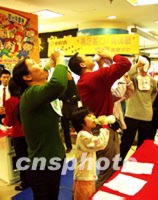 圖:搞促銷廣州商家舉行“吮”奶擂臺(tái)賽 2002年01月12日 19:17 ![]() 節(jié)假日是商家做“秀”搞促銷的黃金時(shí)段。周六,廣州中華廣場(chǎng)舉行了一場(chǎng)“瘋狂‘吮’奶擂臺(tái)爭(zhēng)霸賽”,吸引了不少自認(rèn)為飲量驚人的顧客前來參賽。圖為男女老幼同場(chǎng)較量。中新社圖 羅仰明 攝 |