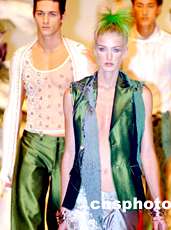 ![]() 香港時裝節(jié)展示前衛(wèi)男女冬裝!跋愀蹠r裝節(jié)2002秋冬系列”的“冬日傳奇”時裝展示1月15日在香港會展中心舉行,模特在“冰天雪地”中展示香港設計師最新設計的男女前衛(wèi)冬裝。中新社傳真 任晨鳴 攝 ![]() 香港時裝節(jié)展示黑紅相佩女冬裝!跋愀蹠r裝節(jié)2002秋冬系列”的“冬日傳奇”時裝展示1月15日在香港會展中心舉行,模特在“冰天雪地”中展示香港設計師最新設計的黑紅相佩的女冬裝。中新社傳真 任晨鳴 攝