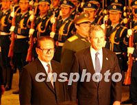 中新社特寫:江澤民主席主持儀式歡迎布什總統(tǒng) 2002年02月21日 12:11 ![]() 中國(guó)國(guó)家主席江澤民二十一日在北京人民大會(huì)堂舉行儀式,與訪華的美國(guó)總統(tǒng)布什檢閱解放軍三軍儀仗隊(duì)。中新社記者 賈國(guó)榮 攝 ![]() 中國(guó)國(guó)家主席江澤民二十一日在北京人民大會(huì)堂舉行儀式,歡迎美國(guó)總統(tǒng)布什訪問(wèn)。中新社記者 賈國(guó)榮 攝