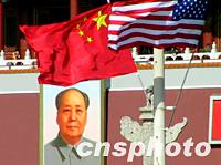 圖:天安門前中美兩國國旗飄揚 2002年02月21日 15:20 ![]() 美國總統(tǒng)小布什訪華之際,在北京天安門前飄揚著中美兩國的國旗。中新社圖 杜洋 攝