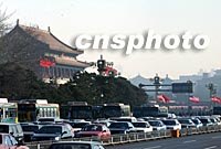 圖:中美國旗飄揚(yáng)天安門 2002年02月22日 09:21 ![]() 美國總統(tǒng)布什訪華,二十二日的北京天安門飄揚(yáng)著中美國旗,路上行速著中美合作的環(huán)保清潔燃料巴士。中新社記者 賈國榮 攝