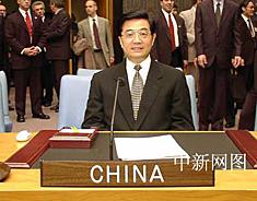 圖:胡錦濤在聯(lián)合國(guó)安理會(huì)做"五秒鐘代表" 2002年04月30日 08:44 ![]() 美國(guó)東部時(shí)間四月二十九日下午,中國(guó)國(guó)家副主席胡錦濤一行在首次對(duì)美國(guó)進(jìn)行正式訪問期間,來到紐約聯(lián)合國(guó)總部參觀。在聯(lián)合國(guó)安理會(huì)會(huì)議廳中,胡錦濤坐到常任理事國(guó)中國(guó)的代表席上留影,并笑稱:“讓我當(dāng)個(gè)五秒鐘的代表吧。”中新社記者 陳建 攝