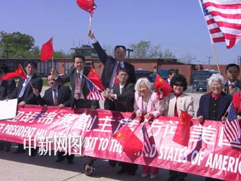 組圖:胡錦濤飛抵華盛頓繼續(xù)對美正式訪問 2002年05月01日 10:39 ![]() 美國當(dāng)?shù)貢r間四月三十日上午十一時許,胡錦濤副主席乘專機(jī)從紐約飛抵華盛頓。圖為胡錦濤副主席和夫人劉永清從中國國際航空公司的飛機(jī)上步下舷梯。中新社 徐德金/攝 ![]() 在安德魯空軍機(jī)場,胡副主席向歡迎人群揮手致意。中新社 徐德金/攝 ![]() 在機(jī)場,胡副主席向華人華僑、留學(xué)生代表揮手致意。中新社 徐德金/攝 ![]() 華盛頓地區(qū)華人華僑、留學(xué)生代表在安德魯空軍機(jī)場歡迎胡錦濤副主席,他們高舉“歡迎胡副主席”、“祝胡副主席訪美成功”、“促進(jìn)中美友誼”等標(biāo)語牌,表達(dá)心聲。中新社 徐德金/攝 ![]() 華盛頓地區(qū)華人華僑、留學(xué)生代表和中國駐美使館工作人員,在安德魯空軍基地?zé)崃覛g迎中國國家副主席胡錦濤訪問美國。中新社 徐德金/攝