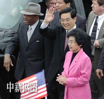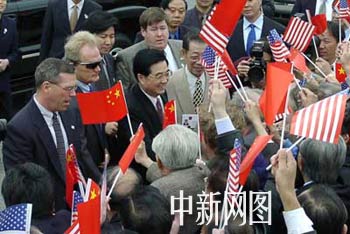 組圖:胡錦濤抵達舊金山 受華人華僑歡迎 2002年05月03日 09:48 ![]() 中國國家副主席胡錦濤一行五月二日中午抵達美國舊金山市。舊金山市黑人市長布朗(左)到機場迎接胡錦濤和夫人來訪。中新社 陳建/攝 ![]() 二百多名當?shù)厝A僑華人手舉中美兩國國旗,在機場熱情迎接胡錦濤的到來。胡錦濤與夫人劉永清在舊金山市市長布朗(左)的陪同下,向歡迎人群揮手致意。中新社 陳建/攝 ![]() 胡錦濤走下專機舷梯后,并沒在美國保安的引導下直接上車,而是向相反方向,走近歡迎人群,高興地與僑胞們握手。中新社 陳建/攝 ![]() 中國國家副主席胡錦濤五月二日中午抵達美國舊金山市。圖為胡錦濤副主席向歡迎人群揮手致意。中新社 陳建/攝