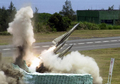 多圖:臺(tái)軍進(jìn)行"神箭"演習(xí) 首次炫耀天弓2型導(dǎo)彈 2002年05月10日 11:56 臺(tái)軍的美制鷹式導(dǎo)彈(法新圖) ![]() “天弓”二型導(dǎo)彈(法新圖) ![]() 臺(tái)軍的“天弓”一型導(dǎo)彈(資料) 中新網(wǎng)香港5月10日消息:臺(tái)北訊,臺(tái)軍配合其“漢光18號(hào)”年度軍演而實(shí)施的“神箭43號(hào)”操演,今天上午在位于屏東的九鵬基地登場(chǎng)。 今天上午的操演以解放軍戰(zhàn)機(jī)襲擊臺(tái)灣東部為假設(shè)狀況,進(jìn)行“天弓”導(dǎo)彈和美制鷹式導(dǎo)彈空中攔截的實(shí)彈射擊。其中的“天弓”二型導(dǎo)彈據(jù)稱是臺(tái)軍自行研發(fā)部署以來(lái)首次公開(kāi)展示。 島內(nèi)媒體稱,演習(xí)中先后進(jìn)行鷹式導(dǎo)彈的“單系統(tǒng)、單目標(biāo)接戰(zhàn)”和“天弓”導(dǎo)彈及鷹式導(dǎo)彈的“雙系統(tǒng)、多目標(biāo)接戰(zhàn)”課目驗(yàn)證。一枚“天弓“導(dǎo)彈和三枚鷹式導(dǎo)彈全部命中35公里外的標(biāo)靶。 據(jù)“中央社”報(bào)道,“神箭43號(hào)”操演是臺(tái)灣陸軍年度例行性的防空導(dǎo)彈射擊訓(xùn)練,由陸軍導(dǎo)彈指揮部執(zhí)行。 臺(tái)軍從4月展開(kāi)其“漢光18號(hào)”演習(xí),其中納入年度“神箭”、“神弓”等防空導(dǎo)彈實(shí)彈射擊與“聯(lián)興”兩棲登陸、“聯(lián)云”空降操演及后備動(dòng)員演習(xí)。 據(jù)悉,臺(tái)軍的“天弓”一型導(dǎo)彈基本參數(shù)為: 彈長(zhǎng):5.498米。彈徑:0.4米。翼展:0.92米。發(fā)動(dòng)機(jī)段:3.192米。藥柱:445公斤。導(dǎo)引方式:半主動(dòng)雷達(dá)或被動(dòng)式紅外線導(dǎo)引。飛行速度:3.7馬赫。射程:100公里。重量:870公斤。 “天弓”二型導(dǎo)彈基本參數(shù)為: 彈長(zhǎng):5.678米。彈徑:0.4米。翼展:0.92米。發(fā)動(dòng)機(jī)段:3.624米。藥柱:612公斤。導(dǎo)引方式:主動(dòng)雷達(dá)導(dǎo)引。飛行速度:4.3馬赫。射程:200公里。重量:1135公斤。