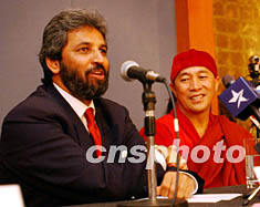 圖文:臺(tái)佛界捐款百萬(wàn)港幣重修阿富汗巴米揚(yáng)大佛 2002年05月17日 16:34 ![]() 5月16日臺(tái)灣宗教界著名心道法師聯(lián)同聯(lián)合國(guó)千年世界和平峰會(huì)秘書長(zhǎng)巴瓦金(Bawa Jain)(左)遠(yuǎn)道來(lái)港,在萬(wàn)豪酒店召開記者會(huì),宣布由臺(tái)灣世界宗教博物館捐贈(zèng)一百萬(wàn)港幣給阿富汗,作為重建“巴米揚(yáng)”大佛像經(jīng)費(fèi)。中新社圖 洪少葵 攝