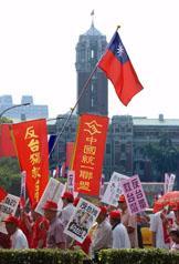 臺北"反臺獨(dú)救臺灣"大游行吁當(dāng)局放棄"臺獨(dú)"黨綱 2002年05月19日 16:30 ![]() 臺灣中國統(tǒng)一聯(lián)盟5月19日發(fā)起“反臺獨(dú)、救臺灣”萬人大游行。民眾以醒目標(biāo)語及旗幟,表達(dá)支持一個中國、反對“臺獨(dú)”的立場。(“中央社”圖) ![]() 臺灣中國統(tǒng)一聯(lián)盟5月19日發(fā)起“反臺獨(dú)、救臺灣”萬人大游行,在“美國在臺協(xié)會”門前,由一名面戴面具、扮作美國總統(tǒng)布什的男子跪地磕頭,就美國干涉臺海事務(wù)向臺灣民眾道歉。(“中央社”圖) 中新社香港五月十九日電 臺北消息:中國統(tǒng)一聯(lián)盟今天發(fā)起“五一九反臺獨(dú)、救臺灣大游行”,數(shù)千臺灣民眾身穿“One China”的紅上衣及紅帽子,高呼“反臺獨(dú)、救臺灣”,以表達(dá)他們支持一個中國、反對臺獨(dú)的立場。 據(jù)“中央社”報導(dǎo),游行隊伍于下午在臺北“中正紀(jì)念堂”出發(fā),民眾在經(jīng)過美國在臺協(xié)會時高呼“ROT(臺灣共和國),爛!爛!爛!One China,贊!贊!贊!”的口號,部分情緒激動的民眾并向美國在臺協(xié)會投擲雞蛋。 游行活動總領(lǐng)隊、中國統(tǒng)一聯(lián)盟主席王津平,日前在獨(dú)派人士的“臺灣正名”游行活動中遭到攻擊而受傷,今天他在游行前發(fā)表演講,抨擊臺灣當(dāng)局兩年來,在民進(jìn)黨臺獨(dú)黨綱箝制下,導(dǎo)致兩岸關(guān)系緊張、經(jīng)濟(jì)嚴(yán)重衰退、社會混亂不安。 王津平說,今天“反臺獨(dú)、救臺灣”大游行的主要訴求,就是呼吁當(dāng)局撤除臺獨(dú)黨綱,遵守“一個中國”,回歸“九二共識”。 中新網(wǎng)香港5月19日消息:臺北訊,臺灣中國統(tǒng)一聯(lián)盟今天號召發(fā)起數(shù)十個島內(nèi)“在野”政黨次級團(tuán)體、反“臺獨(dú)”的民眾、車隊共同參與的“519反‘臺獨(dú)’、救臺灣萬人大游行”。 此次大游行由中國統(tǒng)一聯(lián)盟主席王津平擔(dān)任總領(lǐng)隊。日前為反制“臺獨(dú)”集團(tuán)的所謂“臺灣‘正名’游行”而遭暴力攻擊并受傷的王津平,在游行出發(fā)前發(fā)表演說指出,陳水扁上臺兩年以來,都因?yàn)椤芭_獨(dú)”黨綱箝制當(dāng)局政策發(fā)展,導(dǎo)致兩岸關(guān)系緊張、島內(nèi)嚴(yán)重經(jīng)濟(jì)衰退、社會混亂。 此次游行的主要訴求,就是呼吁陳水扁當(dāng)局及民進(jìn)黨撤除“臺獨(dú)”黨綱,遵守“一中原則”,回歸“九二共識”,以正式渠道恢復(fù)兩岸談判;立即三通,加速經(jīng)濟(jì)互補(bǔ)互利。 此外,游行隊伍向當(dāng)局喊出“反軍購、要福利”、“要顧三通,不要神盾”等口號。 據(jù)悉,游行隊伍也以踐踏美國國旗的方式,表達(dá)對美國介入臺海事務(wù)的強(qiáng)烈不滿。 另外,中國統(tǒng)一聯(lián)盟今晚將在舉辦“中國人團(tuán)結(jié)之夜”音樂會,呼應(yīng)白天的游行主題。 相關(guān)報道:臺灣中國統(tǒng)一聯(lián)盟控告李登輝及"臺獨(dú)"分子施暴 相關(guān)報道:董建華會見臺灣"中國統(tǒng)一聯(lián)盟一國兩制參訪團(tuán)" 相關(guān)報道:臺灣中國統(tǒng)一聯(lián)盟訪港考察"一國兩制"實(shí)施情況 相關(guān)報道:臺灣中國統(tǒng)一聯(lián)盟抗議海外"臺獨(dú)"組織在臺興風(fēng)作浪 相關(guān)報道:臺灣“中國統(tǒng)一聯(lián)盟”抗議日相參拜靖國神社 相關(guān)報道:臺灣中國統(tǒng)一聯(lián)盟等十多個團(tuán)體抗議達(dá)賴訪臺 相關(guān)報道:臺灣中國統(tǒng)一聯(lián)盟座談會指臺灣沒理由抗拒“一國兩制”