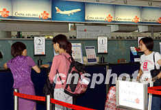 組圖:香港赴臺灣航班營運正常 2002年05月26日 14:45 ![]() 五月二十六日上午,香港國際機場赴臺灣的所有航營運正常。圖為“華航”柜臺均與往常一樣,次序井然。中新社記者 潘索菲 攝