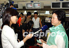 ![]() 五月二十六日上午,從香港赴臺北的航班正常起飛,臺北乘客關注“華航失事”,但并未影響他們搭乘“華航”班機的心情。中新社記者 潘索菲 攝