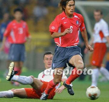 圖:韓國隊(duì)6號(hào)柳相鐵為韓國射入第二進(jìn)球 2002年06月04日 21:27 ![]() 世界杯小組賽韓國隊(duì)2-0勝波蘭,圖為射入第二個(gè)進(jìn)球的韓國隊(duì)6號(hào)隊(duì)員柳相鐵。
