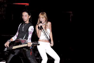 “流行散主”濱崎步是日本眼下最當(dāng)紅的藝人,她壓軸出場(chǎng),商業(yè)化的包裝和舞臺(tái)表演令人眼花繚亂,而其風(fēng)頭被先她出場(chǎng)的李玟所搶走。由于語言和熟悉度的關(guān)系,日方最受歡迎的歌手還是幾年前在中國(guó)風(fēng)靡一時(shí)的青春偶像酒井法子,雖然已為人母并淡出歌壇多時(shí),但七年后再次來到北京的酒井法子甜美依舊,尤其一首用中文演唱的《我只在乎你》,似乎把時(shí)光帶回從前,酒井法子和觀眾都格外激動(dòng)。