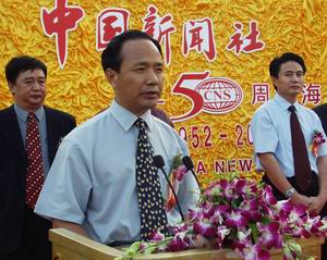 中新社總編輯郭招金在慶典上致辭。他說,中新社是中國兩家通訊社之一,成立于一九五二年九月十四日,主要為港澳同胞、臺灣同胞、華人華僑服務(wù)。目前,中新社在中國內(nèi)地的二十五個省、自治區(qū)、直轄市設(shè)有五十六個分社、支社、記者站。在香港、澳門特別行政區(qū),在美國、澳大利亞、日本、法國、泰國建有分支機構(gòu),F(xiàn)在中新社每天播發(fā)新聞電訊稿一百余條,傳真圖片三十多張,中國新聞網(wǎng)每天更新新聞四五百條,中國新聞圖片網(wǎng)每天更新新聞圖片一百多幅,向海外幾十家報紙?zhí)峁⿲8搴椭谱魇邆報紙版面。