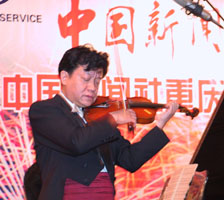 盛中國夫婦演奏的《梁祝》、《致愛麗絲》等小提琴、鋼琴名曲把今晚的慶祝酒會推向了高潮。
